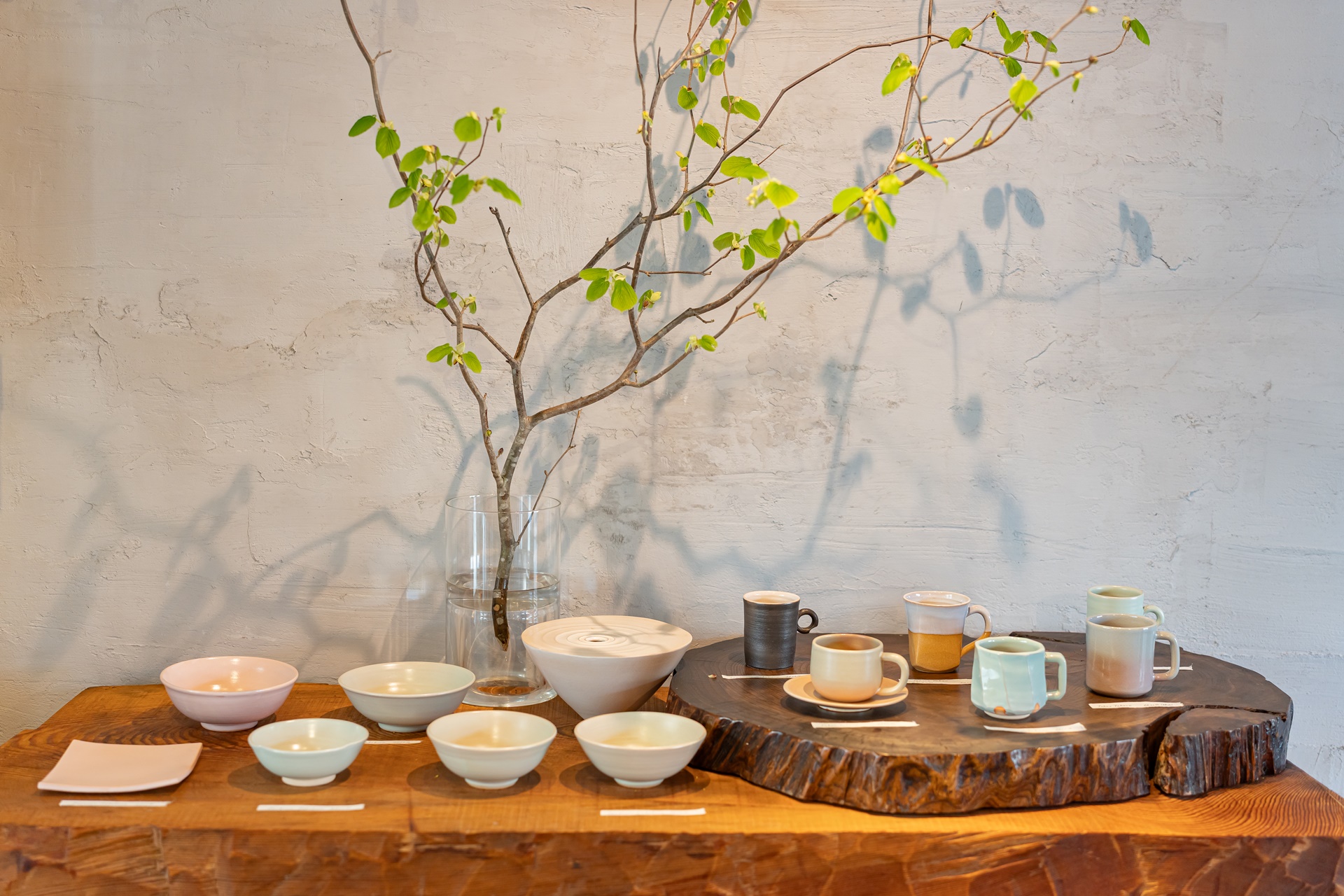 오토즈레강의 물소리를 가장 가까이서 들으며 예술적 휴식을 즐길 수 있는 'cafe&pottery 音(오토)'는 나가토 유모토 온천 재개발 프로젝트의 감성을 상징하는 아주 특별한 공간입니다. 이곳의 이름에 'Pottery(도자기)'가 들어가는 이유는 일본의 3대 도자기 중 하나로 꼽히는 '하기야키'를 전면에 내세우기 때문입니다. 카페에서 음료를 주문하면 작가들이 정성껏 빚은 하기야키 잔에 담겨 나옵니다. 하기야키 특유의 따뜻하고 포근한 흙의 질감을 손끝으로 느끼며 마시는 커피는 이곳에서만 가능한 독특한 경험입니다. 카페 한쪽은 갤러리로 운영되어, 현대적 감각이 더해진 세련된 도자기 작품들을 감상하고 직접 구매할 수도 있습니다.