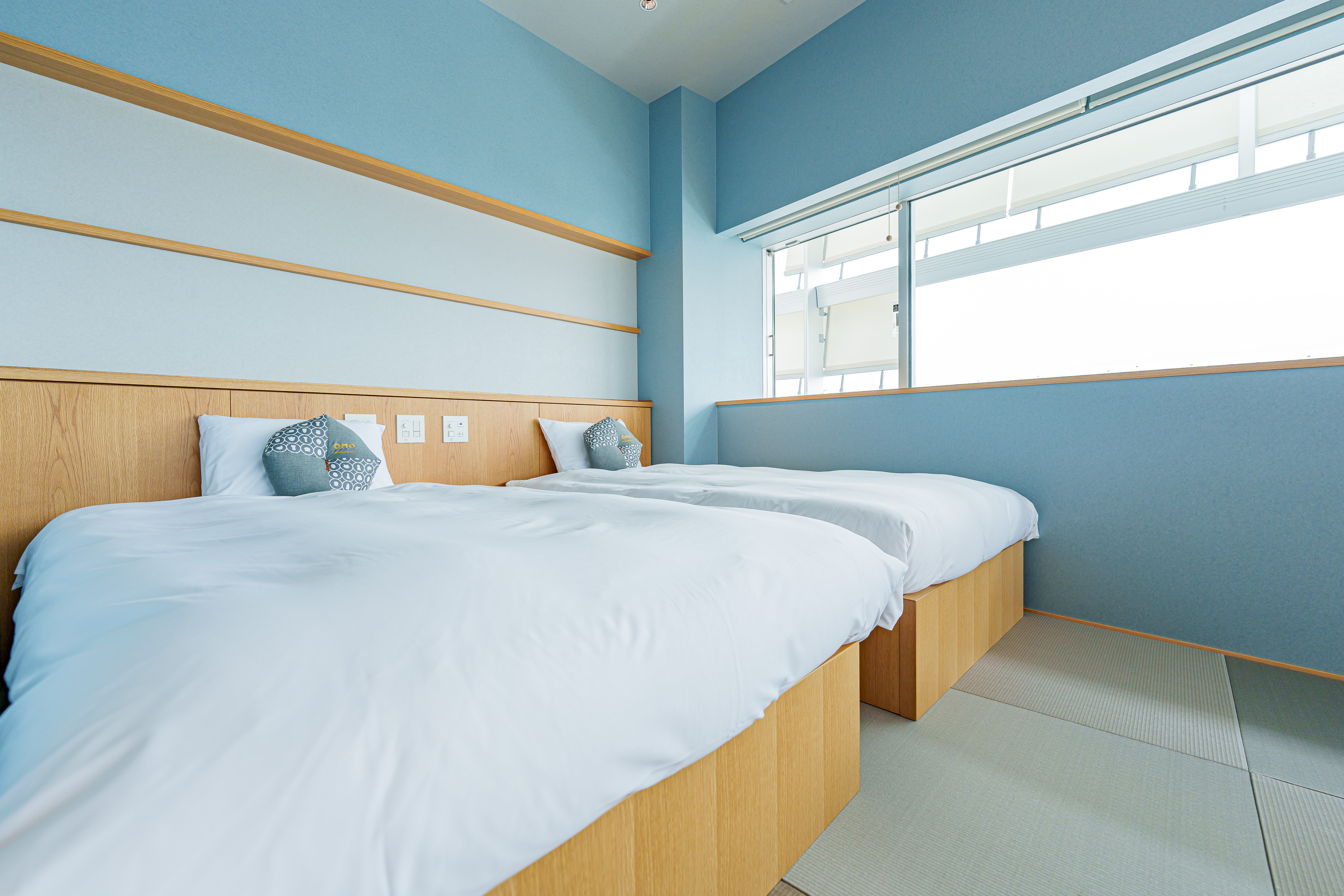 OMO7 오사카 by 호시노 리조트의 오모(OMO)의 객실은 일본 전통 다다미를 사용하여 신발을 벗고 편한하게 다닐 수 있습니다. 객실 타입 중 한 곳인 이도바타 스위트(いどばたスイート)는 객실 중앙에 대형 테이블과 소파를 갖춘 거실 공간이 있으며 한쪽 벽에는 오사카의 지도와 관광명소가 그려진 보드가 있어 오사카 여행을 계획하고 정리하기며 이야기를 나누기에 좋습니다. 객실의 창도 넓게 설치되어 있어 오사카의 거리를 바라보며 시간을 보낼 수 있습니다.