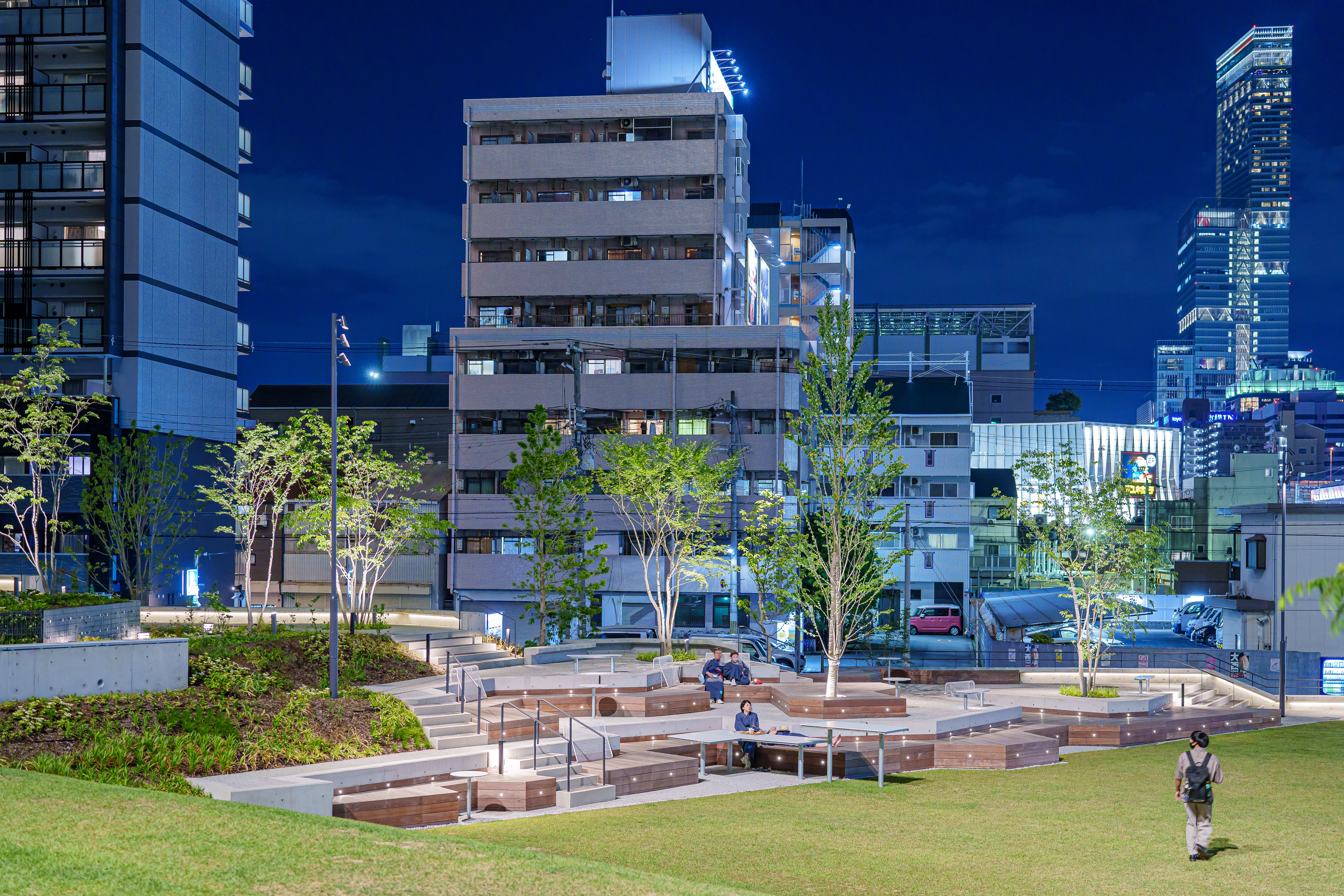 호텔 앞에는 숙박객과 오사카의 시민들이 자유롭게 이용할 수 있는 약7,600평의 정원인 미야구린이 있습니다. 미야구린은 신이마미야(新今宮)의 미야와 그린(green)의 일본 발음인 구린을 합쳐 만든 명칭으로 넓은 잔디 광장과 이를 둘러싼 테라스, 산책로 등으로 구성된 초록의 공간입니다. 누구나 자유롭게 이용가능하며 카페가 있어 음료와 간단한 먹거리도 즐길 수 있습니다. 저녁이되면 오사카를 테마로 한 네온아트 이벤트가 열립니다.